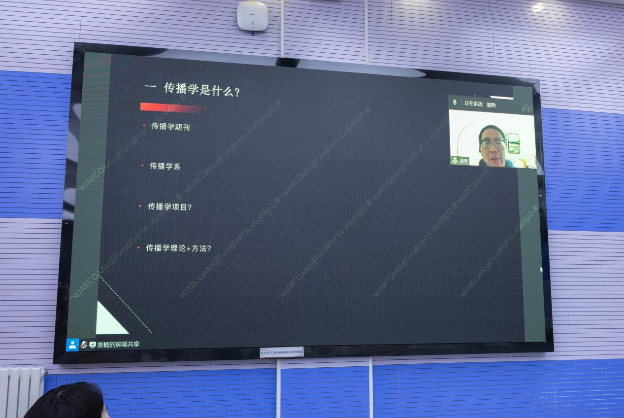 在课堂末尾的互动环节,同学们热情地举手提出疑问,潘老师对同学们的疑问予以解答。通过本次课程,同学们对传播学的定义、作用等都有了更深入的了解,知悉了很多学科的专业名词,对传播学未来的专业方向也有了一定的了解。