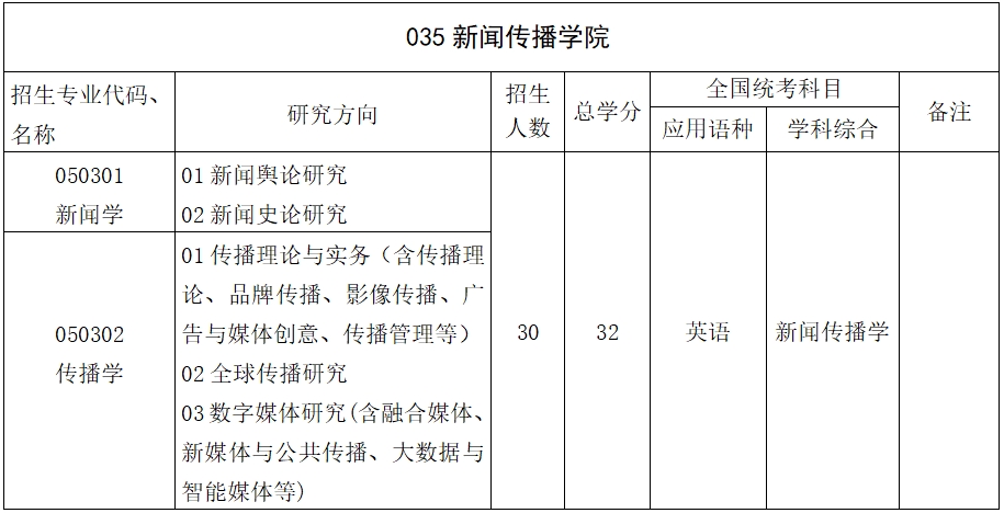 二、招生专业目录