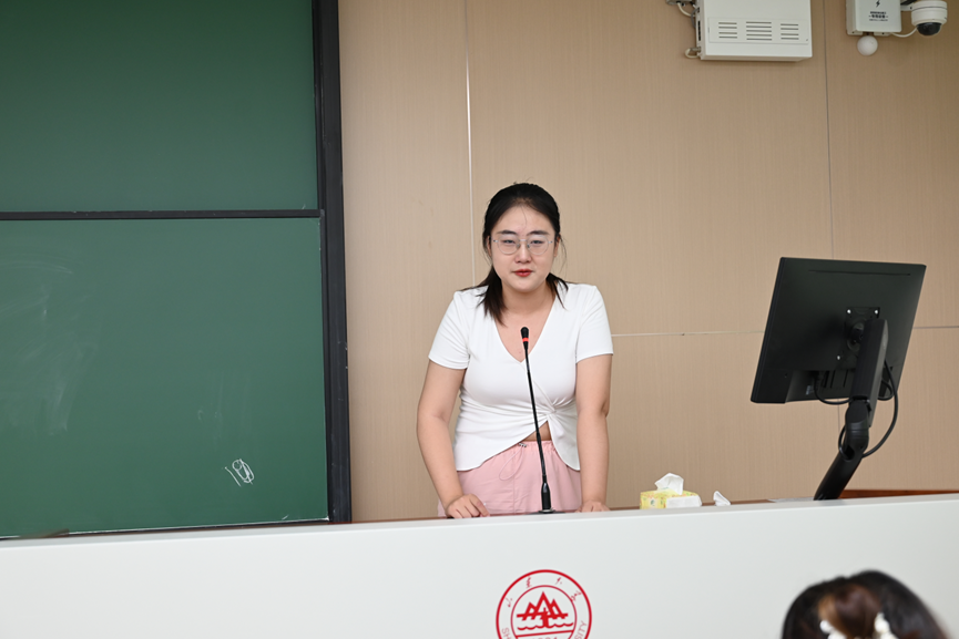 随后,第八届团委副书记张鑫淼进行发言。她回顾了团委和学生会一年以来的工作成果,提出了对未来工作的规划,进一步规范化工作流程,对大家在学生工作上所付出的汗水和努力表示肯定。然后她对学院老师的关心和指导表示感谢,对第八届“一委四会一中心”的成员的工作和陪伴表示感谢,同时鼓励大家不忘初心、保持热爱,期待来年做出更好的成绩。