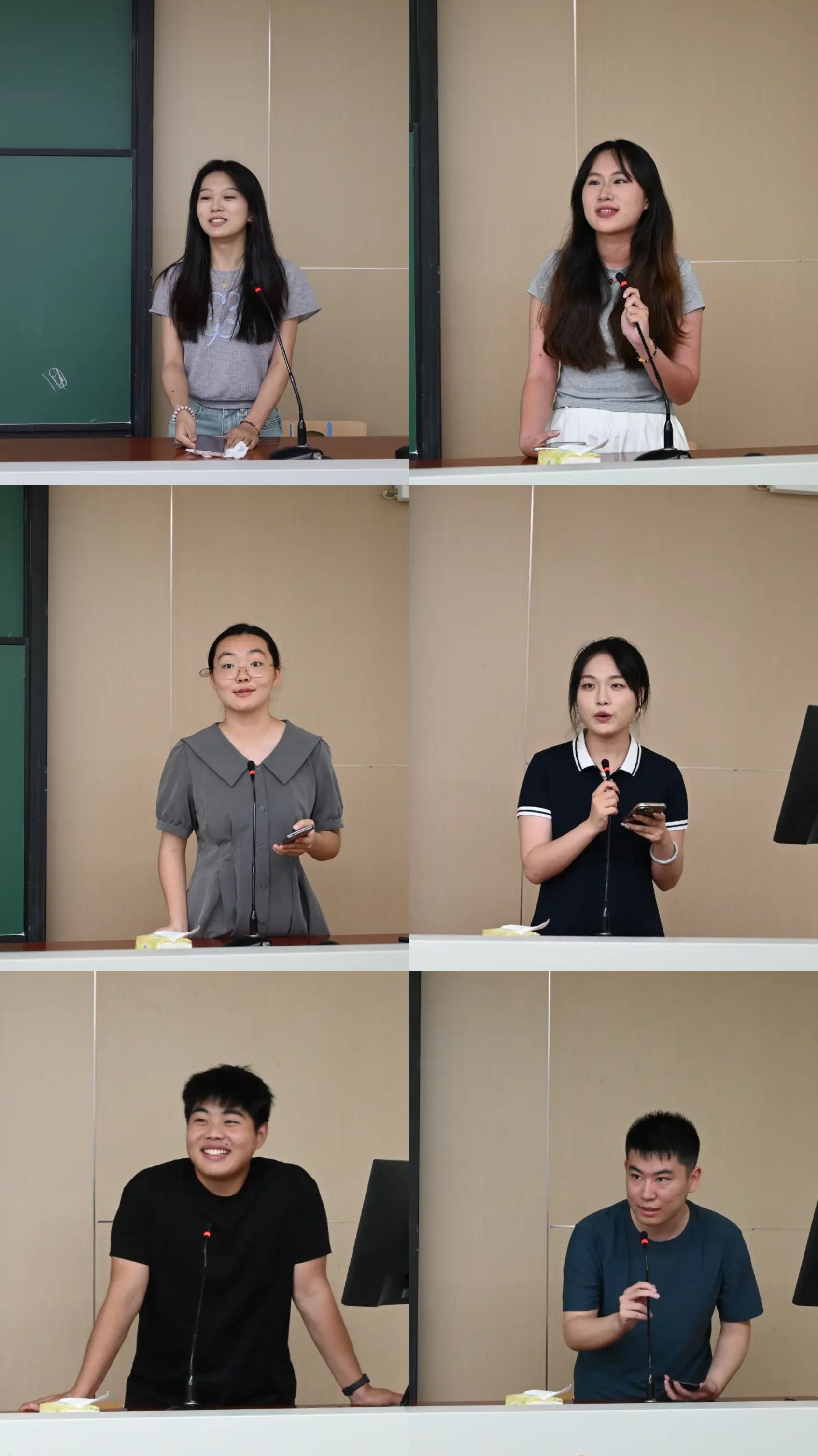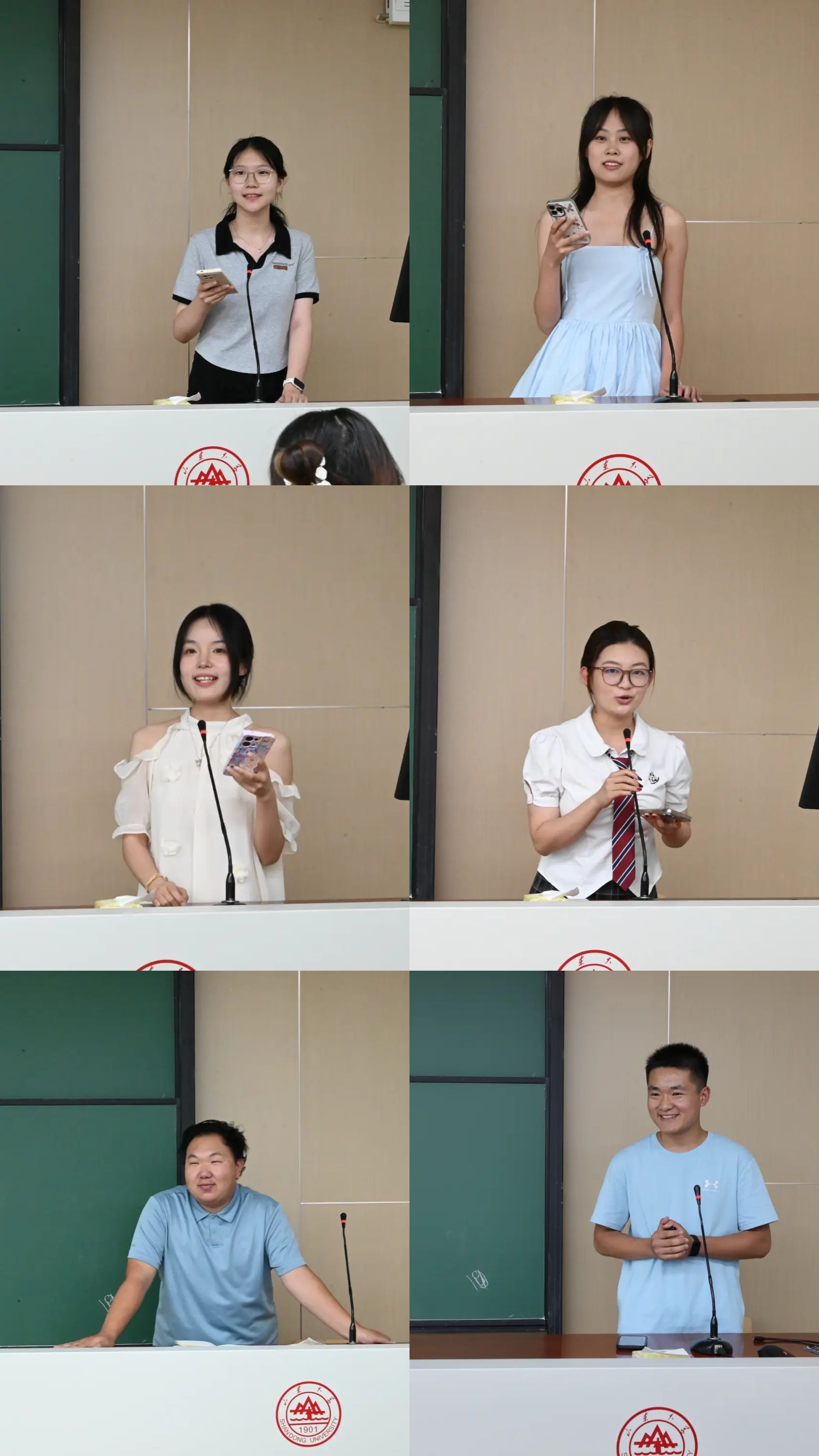 随后,新一届团委、学生会各部门部长进行发言。团委宣传部部长李嘉瑶、团委实践部部长柳佳宜、团委素质拓展培养部部长杜若蘅、团委组织部部长段佳灿、学生会办公室部长李帛航、学生会媒体宣传中心部长袁泽琪、学生会学术科创部部长尹天佑、学生会文艺部部长方英杰、学生会体育部部长王帅分别发言,表达了对第八届团委学生会成员的感谢,并回顾了过去两年的学生工作,肯定了成果并指出不足,对新一年团委学生会工作作出规划和承诺,盼望着在下一年收获更多的丰硕成果。