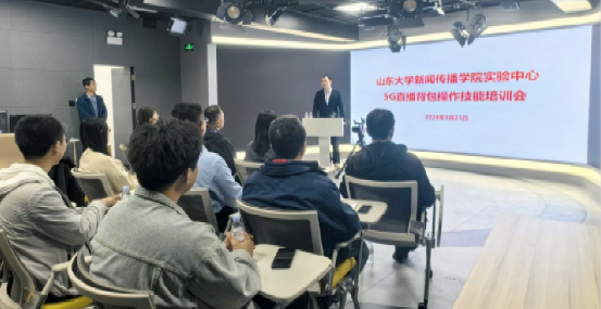 2024年3月21日,det365登录网站主页实验中心举办的“多链路捆绑无线图传5G/4K直播背包”操作技能培训会(2024年第1期)在董明珠楼三层综合演播室召开。融媒体中心副主任孟丽出席,学院专业教师、广播电视台和实验管理人员、本科生等20余人参加。培训会由院长助理、实验中心主任于智源主持,