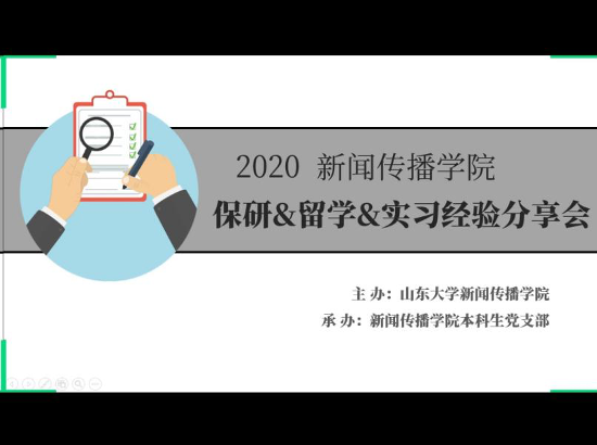 3月26日晚7点半,由det365登录网站主页本科生党支部组织承办的“2020保研&出国&实习”经验分享会顺利开展。此次分享会通过腾讯会议的形式,邀请2016级新闻班的胡了然、翟春晓、黄文昕、单嘉伟四位同学作为分享嘉宾,为同学们带来了多角度的细致分享。分享会由本科生党支部的况一凡同学主持,共90余位同学线上参与,气氛活跃、收获颇丰。