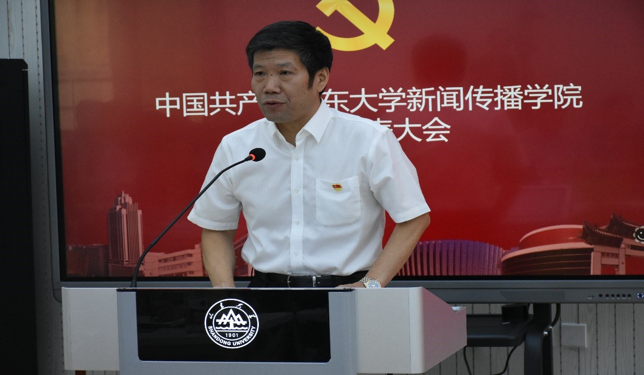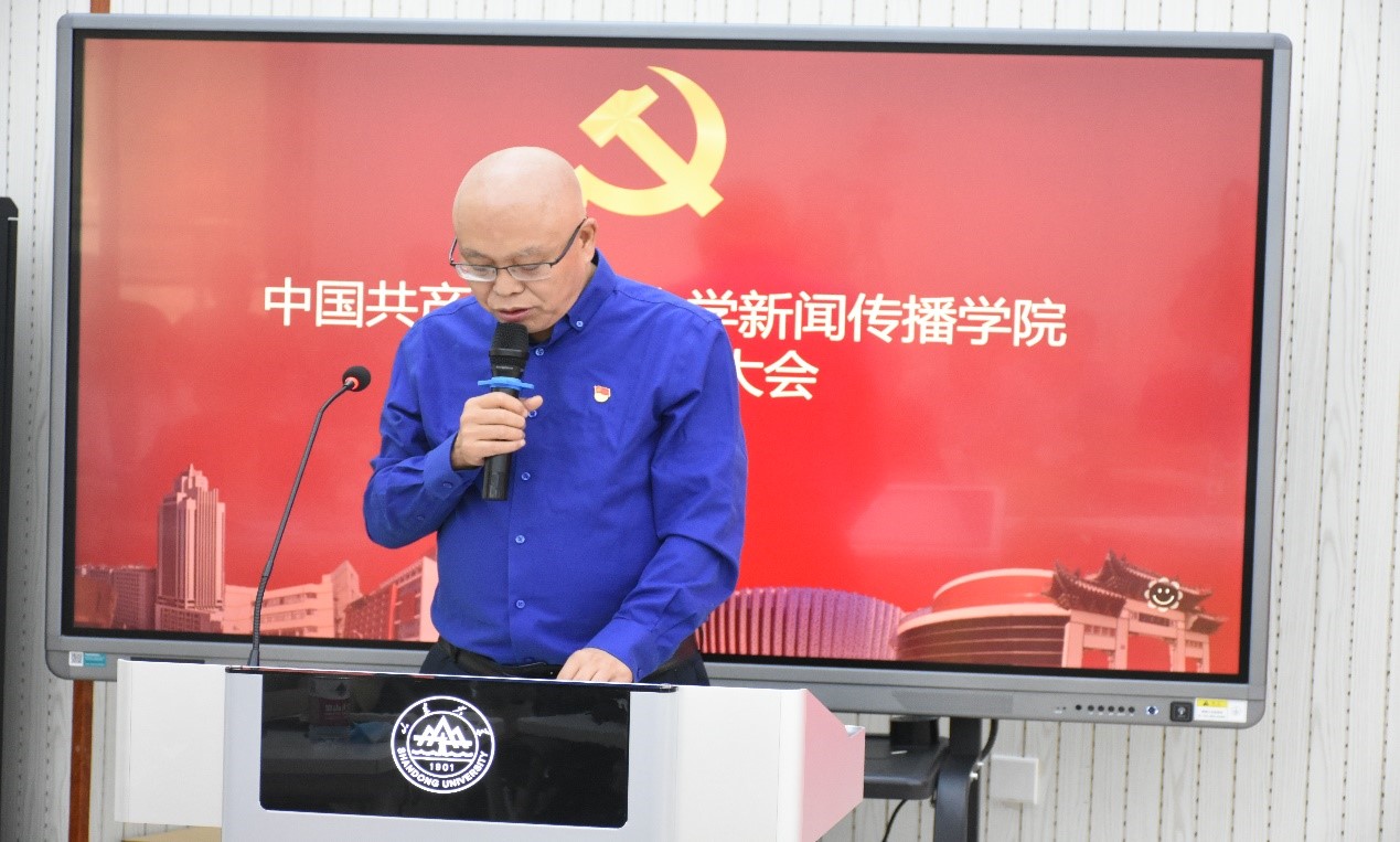 王德胜以《凝心聚力 奋勇争先 为实现学院快速发展努力奋斗》为题向与会师生党员进行工作报告。报告从党建工作、学科建设、科研创新、教育教学、师资队伍、人才培养、服务社会、国际交流等方面全面总结了学院过去四年间取得的工作成就,分析了当前工作中存在的问题和不足,提出将学院建设成为学科实力强、办学特色鲜明、社会贡献度大,在全国具有重要影响力的一流det365登录网站主页的发展目标。报告指明了学院今后工作重点和努力方向:一是全面加强党的领导和党的建设;二是全面推进学科创新和建设;三是努力延揽优秀人才,加强师资队伍建设;四是围绕卓越新闻传播人才教育培养计划2.0,提升本科人才培养质量;五是推进学位点现代化工程建设,提升研究生培养质量;六是深入拓展国际合作与交流,全面提高国际化水平;七是开展高质量对外合作与社会服务工作;八是完善学院治理体系,做好学院文化建设。