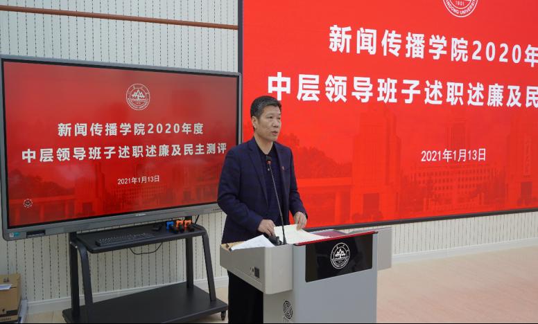 学院常务副院长刘明洋首先进行了述职述廉。他结合分管的领域,总结汇报一年来的工作开展情况,重点介绍了学院在学科建设、教学科研、社会服务、人才引进交流等方面的成果,同时分析了工作中的不足及今后的工作打算,鼓励大家在新的一年里以学科评估、“十四五”发展规划建设等为契机,共创学院新辉煌。