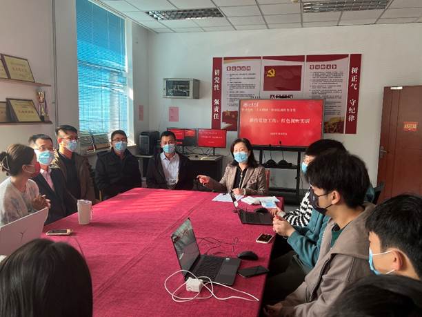 组织员王智洁从党支部建设方面提出三点要求:一是在学院迅速掀起学习宣传贯彻党的二十大精神的热潮之际,各支部要加强学习党的二十大精神,将学科发展和专业学习相结合,将主动学习与创新学习相结合,将理论学习与实践能力提升相结合。学习贯彻“全面建设社会主义现代化国家,必须坚持中国特色社会主义文化发展道路”,各支部从传承和弘扬红色文化视角出发,开展红色经典阅读等学习活动。二是加强支部规范化建设,在各支部相互学习借鉴基础上,做好“三会一课”学习与主题党日活动,加强灯塔、旗帜系统管理,规范党员发展各阶段的档案建设。三是高度重视、珍惜此次红色视听实训,认真学习、掌握现代化视听技术,为全面提升就业竞争力与专业实力打好基础。