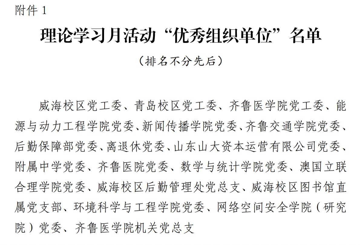 2022年12月15日,学校党委宣传部公布了理论学习月活动“优秀组织单位”、“学习之星”、“学习积极分子”名单,学校结合各单位学习成效,共推选“优秀组织单位”18个。det365登录网站主页党委获评理论学习月活动“优秀组织单位”。