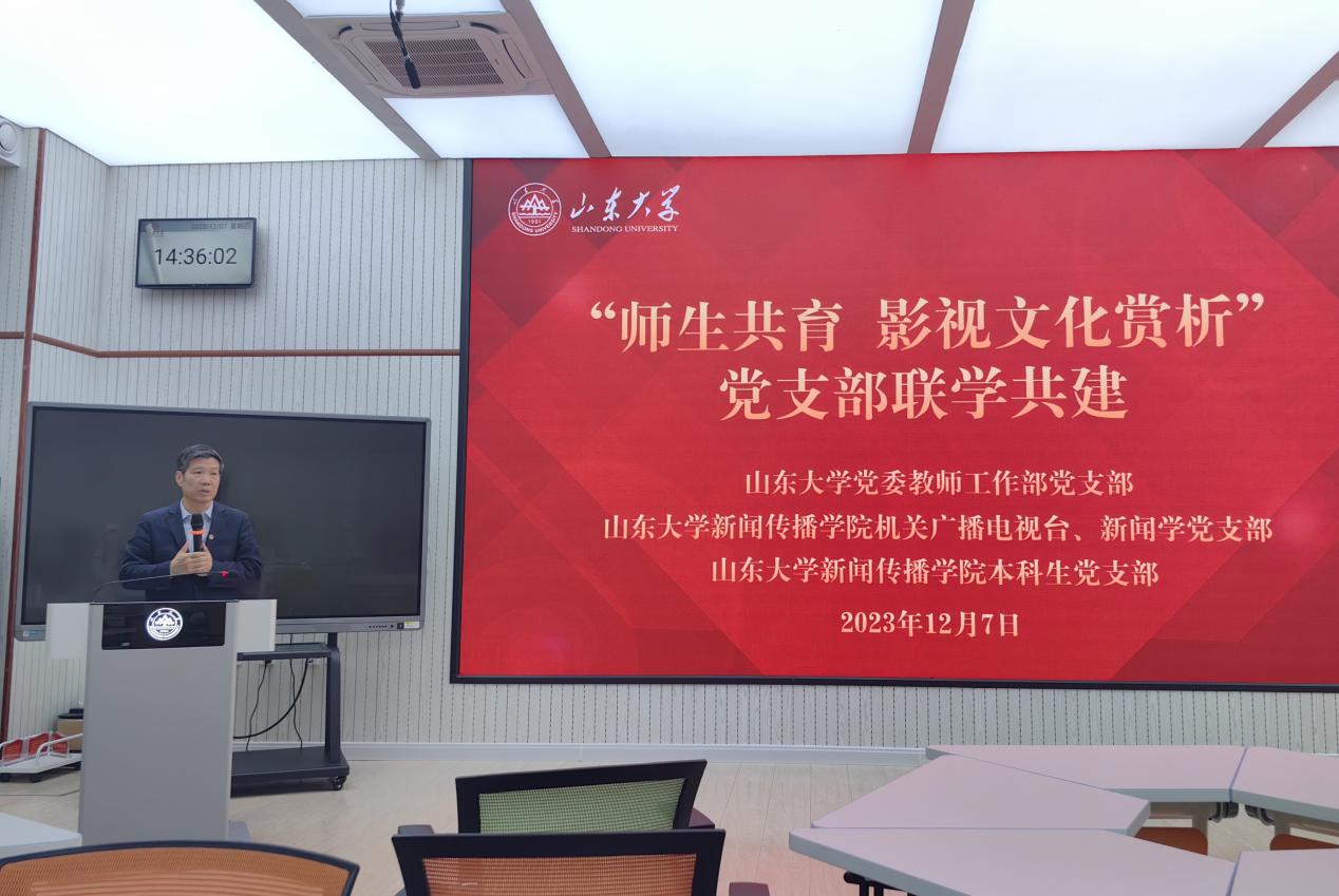 12月7日,det365登录网站主页机关广电党支部党员参加以“师生共育,影视文化赏析”为主题的党支部联学共建活动。参加此次活动的其他党支部有det365登录网站主页党委教师工作部党支部、det365登录网站主页新闻学党支部和本科生党支部。此次活动由det365登录网站主页团委书记杨璐主持。det365登录网站主页党委书记王德胜,党委学生工作部、武装部副部长朱伟,党委教师工作部副部长张权,det365登录网站主页党委副书记王丽君和det365登录网站主页部分教师学生参加活动。
